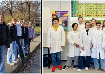 Wie viel Mathematik sich auch außerhalb des Klassenzimmers finden lässt, konnten unsere Mkids (Mathe kann ich doch!) unter Leitung ihrer Lehrerin Marina Haas in Stuttgart selbst erleben. Während sich die „neuen“ Mkids der Klassen 6 auf Geocaching-Tour begaben, besuchte die Mkid-AG der Klassenstufe 7 das Fehling-Lab, das Schülermitmachlabor der Universität Stuttgart.