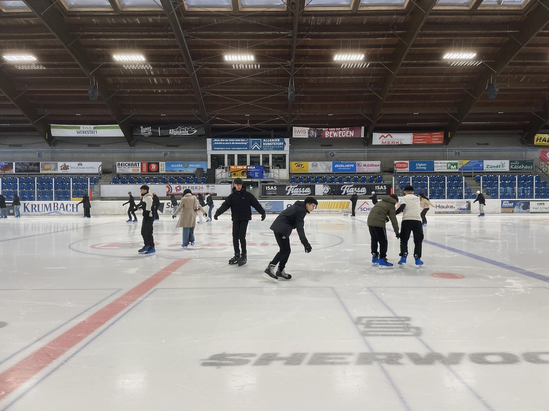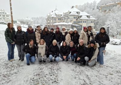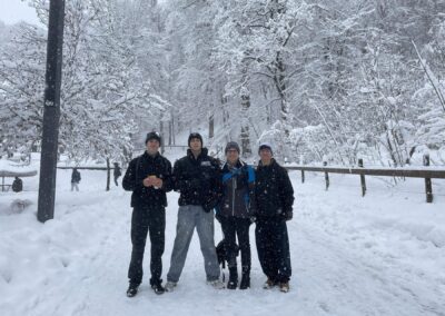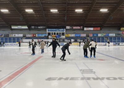 Für den Part „Bewegung“ war unter anderem Kai Häfner zuständig. Der erfolgreiche Handballer aus der Gmünder Umgebung erzählte im Gespräch mit den Schülerinnen und Schülern aus seinem Leben als Sportler. Bei einem Ausflug nach Neuschwanstein stand neben dem obligatorischen Besuch des Schlosses auch eine Führung sowie Schlittschuhlaufen in Füssen im Bundesstützpunkt für Eishockey und Curling auf dem Programm. Ein besonderes Highlight war, dass man den Profis beim Training dieser zwei Sportarten zuschauen konnte. Und natürlich ging es auch um die Fortbewegung, so komplementierte ein Besuch im Mercedes-Benz-Museum in Stuttgart den Aspekt des Austauschthemas.