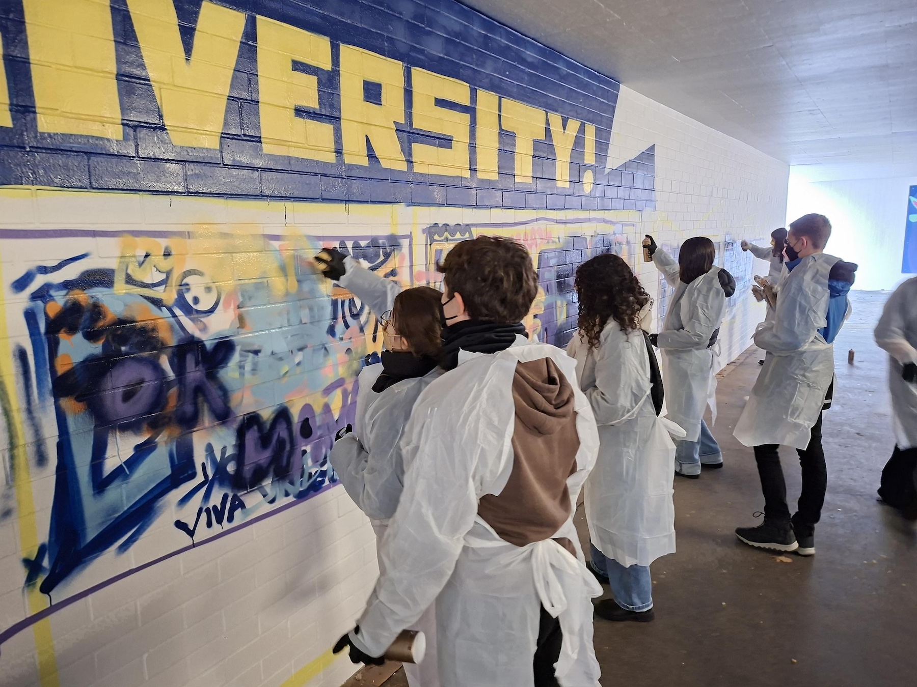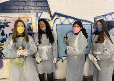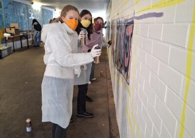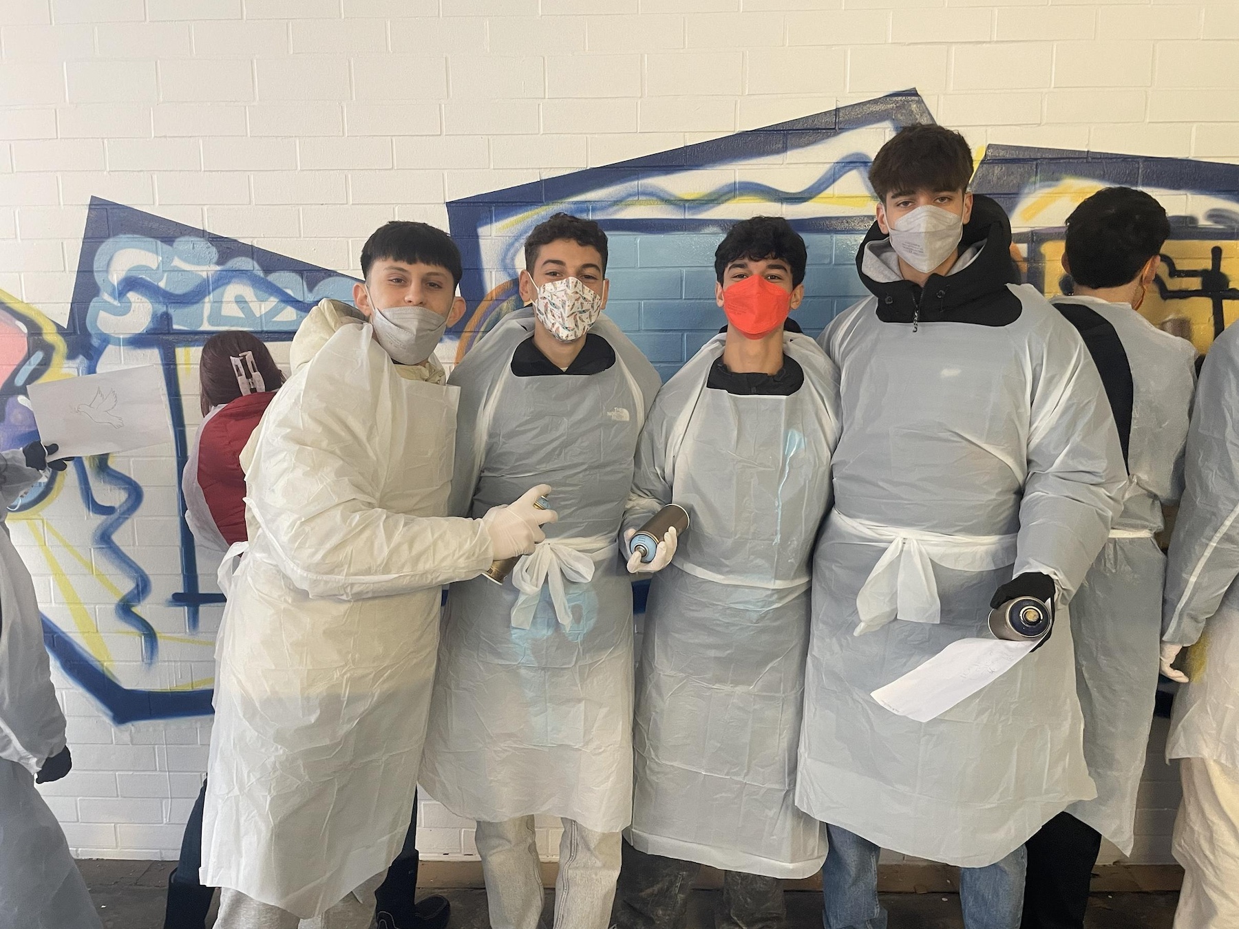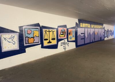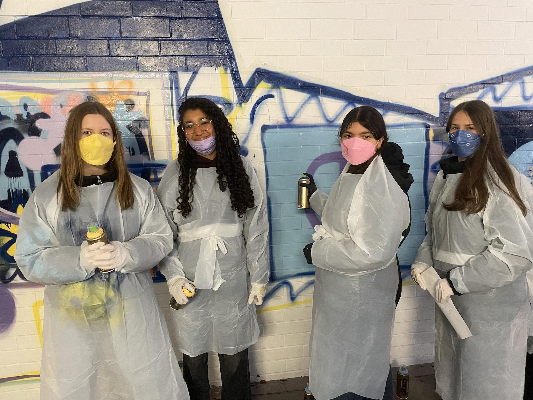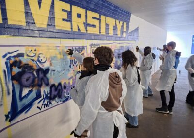 Der Spanien-Austausch zwischen dem Scheffold-Gymnasium und der Schule „IES Llombai“ in Burriana ging in die vierte Runde: Ende November besuchten die spanischen Austauschschülerinnen und -schüler ihre jungen Gastgeberinnen und Gastgeber in Schwäbisch Gmünd. Auch in diesem Jahr stand der Austausch wieder unter einem besonderen Motto: „Bewegung und Kunst im Spiegel europäischer Werte‘‘ – so das Thema, für das die beiden Spanischlehrende am Scheffold-Gymnasium, Julia Bader und Manuel van der Meijden, ein abwechslungsreiches Programm zusammengestellt hatten: Die Kunst fand beispielsweise ihren Ausdruck in einem gemeinsamen Handlettering-Workshop, in dem Weihnachtskarten gestaltet wurden. Und auch als Graffiti-Sprayer durften sich die jungen Scheffoldianer mit ihren Gästen ausprobieren: Sie verschönerten einen Morgen lang unter Anleitung eine Wand der Unterführung des Schulzentrums mit verschiedenen Motiven, die europäische Werte zeigen. Am Nachmittag kamen dann die Familien der deutschen Schülerinnen und Schüler, um das Graffiti zu sehen und anschließend in der Schule zusammen weihnachtlich zu essen und zu trinken.