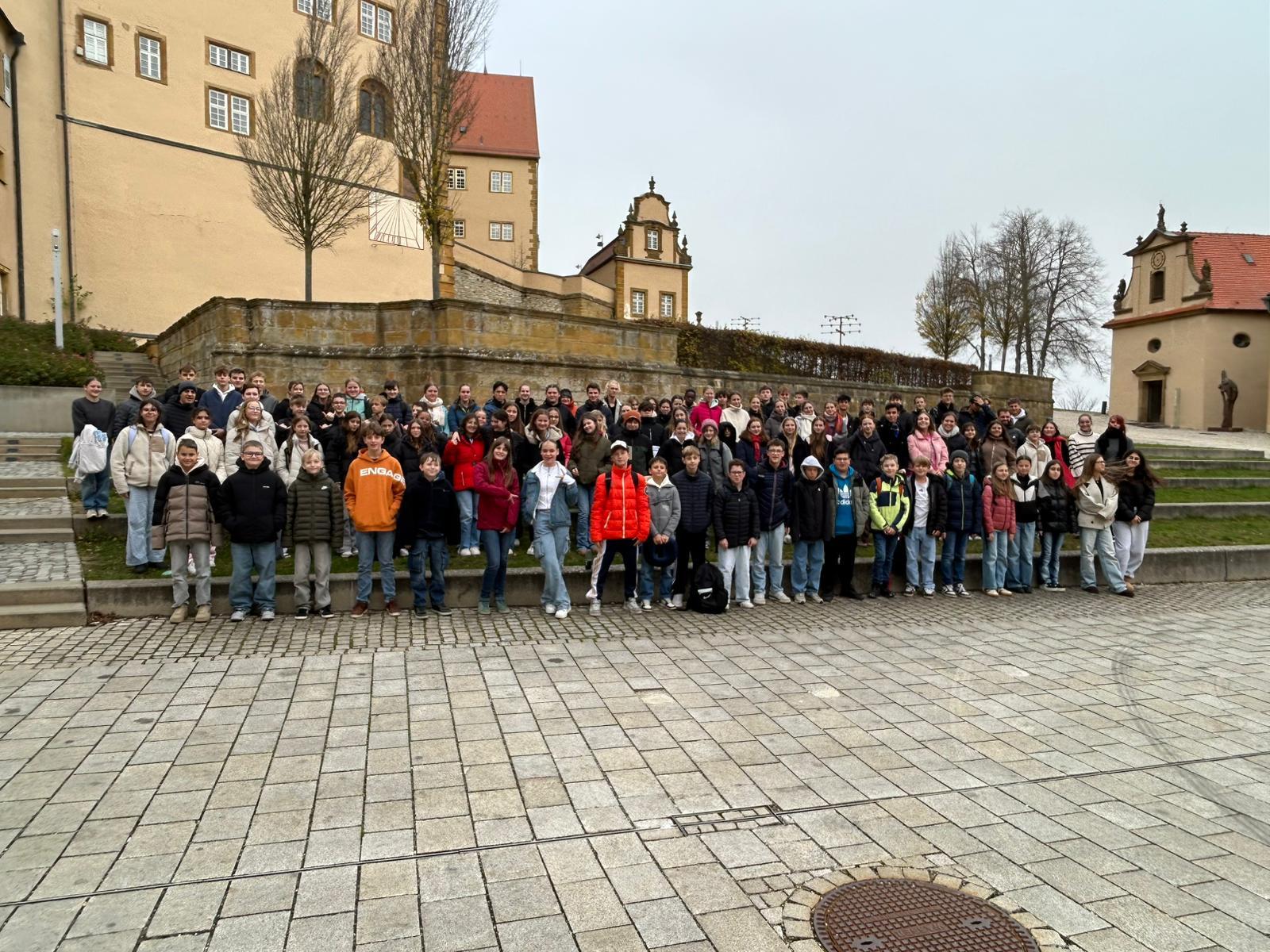 Vom 12. bis 14. November verbrachten rund 100 Schülerinnen und Schüler des Scheffold-Gymnasiums mit ihren Musiklehrern Kilian Baur, Manuela Essig, Diana Magg und Valentin Sachsenmaier drei volle Probentage auf der Kapfenburg. In den historischen Räumen wurde rund um die Uhr gesungen und musiziert. Der Aufenthalt diente der Vorbereitung für die Musical-Aufführung von Chören, Orchester und Big-Band des Scheffold-Gymnasiums: Am 23. Januar stehen die Scheffoldianer bei „Sister Act “, das auf dem gleichnamigen Film mit Whoopi Goldberg basiert, auf der Bühne im Stadtgarten. Die Musik hat Alan Menken komponiert, bereits zum zweiten Mal kooperiert die Schule mit der „Tanzwerkstatt“ aus Spraitbach (Leitung: Annette Scheuvens). „Nach dem Erfolg vom „Kleinen Horrorladen“ freuen wir uns, dass wir erneut ein gemeinsames Projekt gefunden haben und jetzt bald auf großer Bühne verwirklichen können“, erklärt Musiklehrer Valentin Sachsenmaier, der Chor und Orchester beim Auftritt leiten wird.